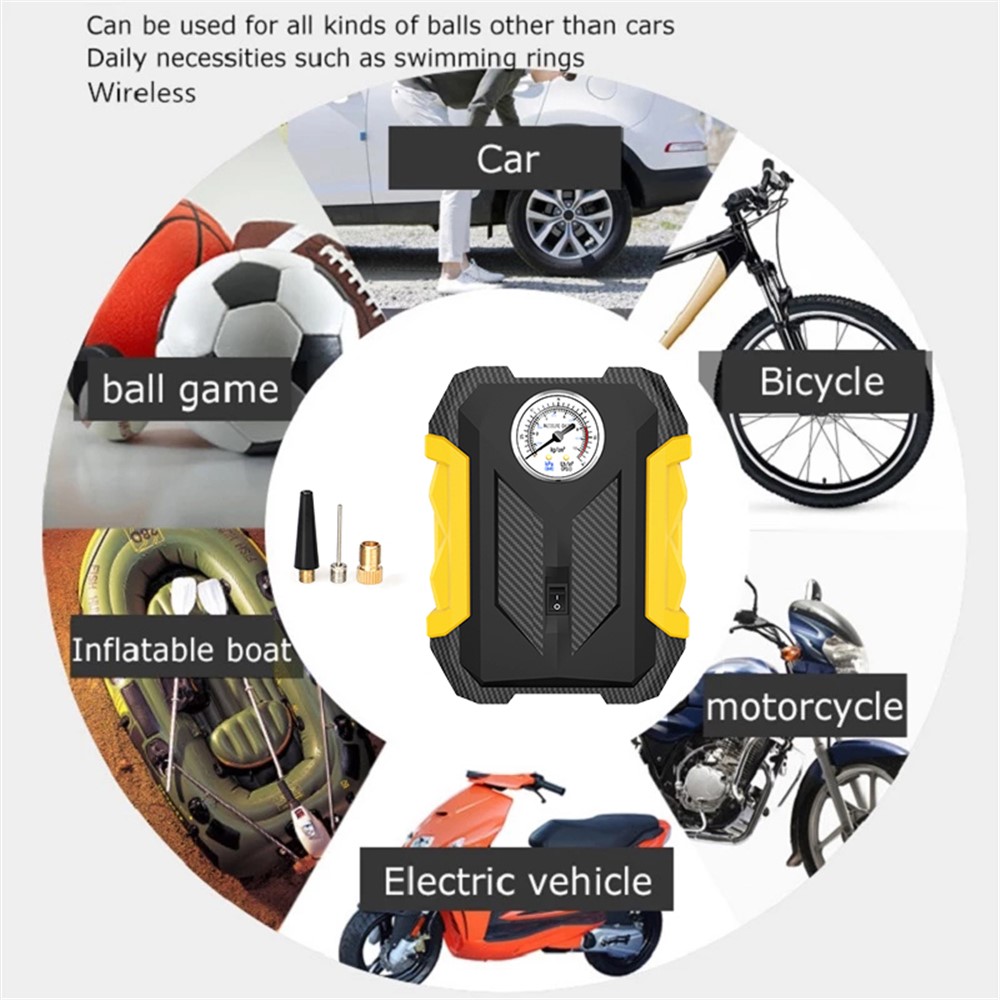 Compresor Auto 12V cu LED, 100 PSI, 27 L/min, Manometru, 3 Duze – Ideal pentru Masina, Moto, Biciclete si Unflabile