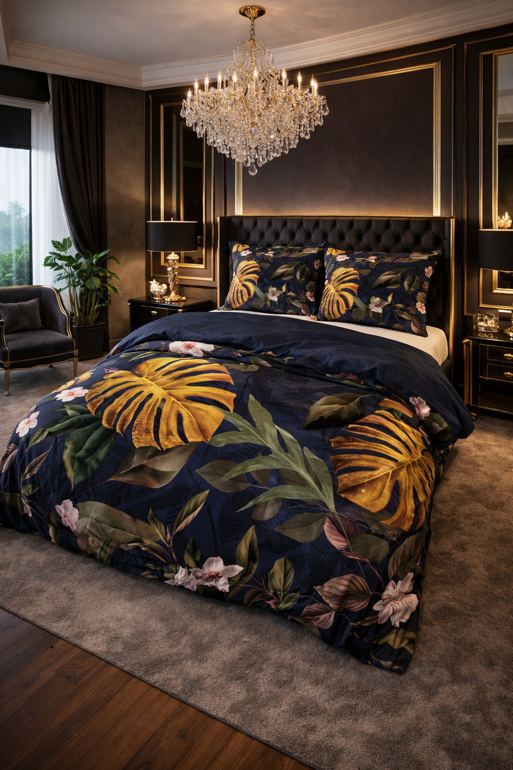 Lenjerie de pat Dreamhouse, 1x husa pilota 140x200/220, 1x fete de perna 60x70, Bumbac 100%, Hipoalergenica, 144T, model Nature Dark Green, imprimeu Print Digital, culoare Multicolor