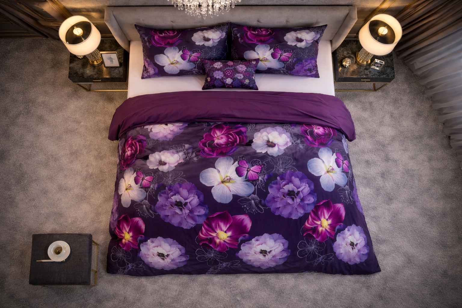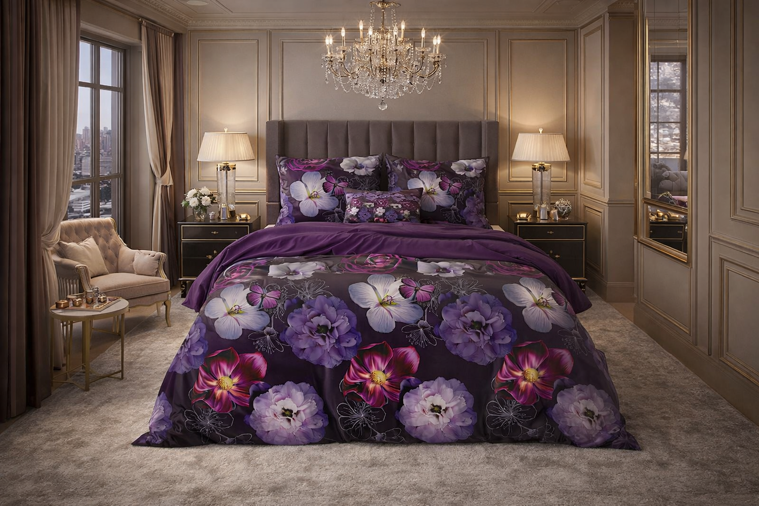 🛏️ Lenjerie de pat Sleeptime Elegance Magic Flower Purple – Eleganta florala si confort zilnic