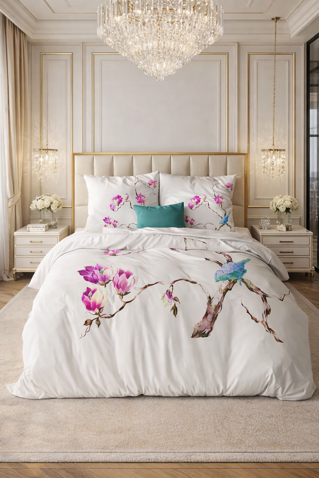 Lenjeria de pat Essentials Magnolie Alba este realizata din 100% microfibra de calitate, 90 GSM, oferind o senzatie placuta la atingere si un somn confortabil. Designul floral cu magnolii si culoarea alba aduc luminozitate si rafinament dormitorului, iar proprietatile antialergice o fac potrivita pentru utilizare zilnica.