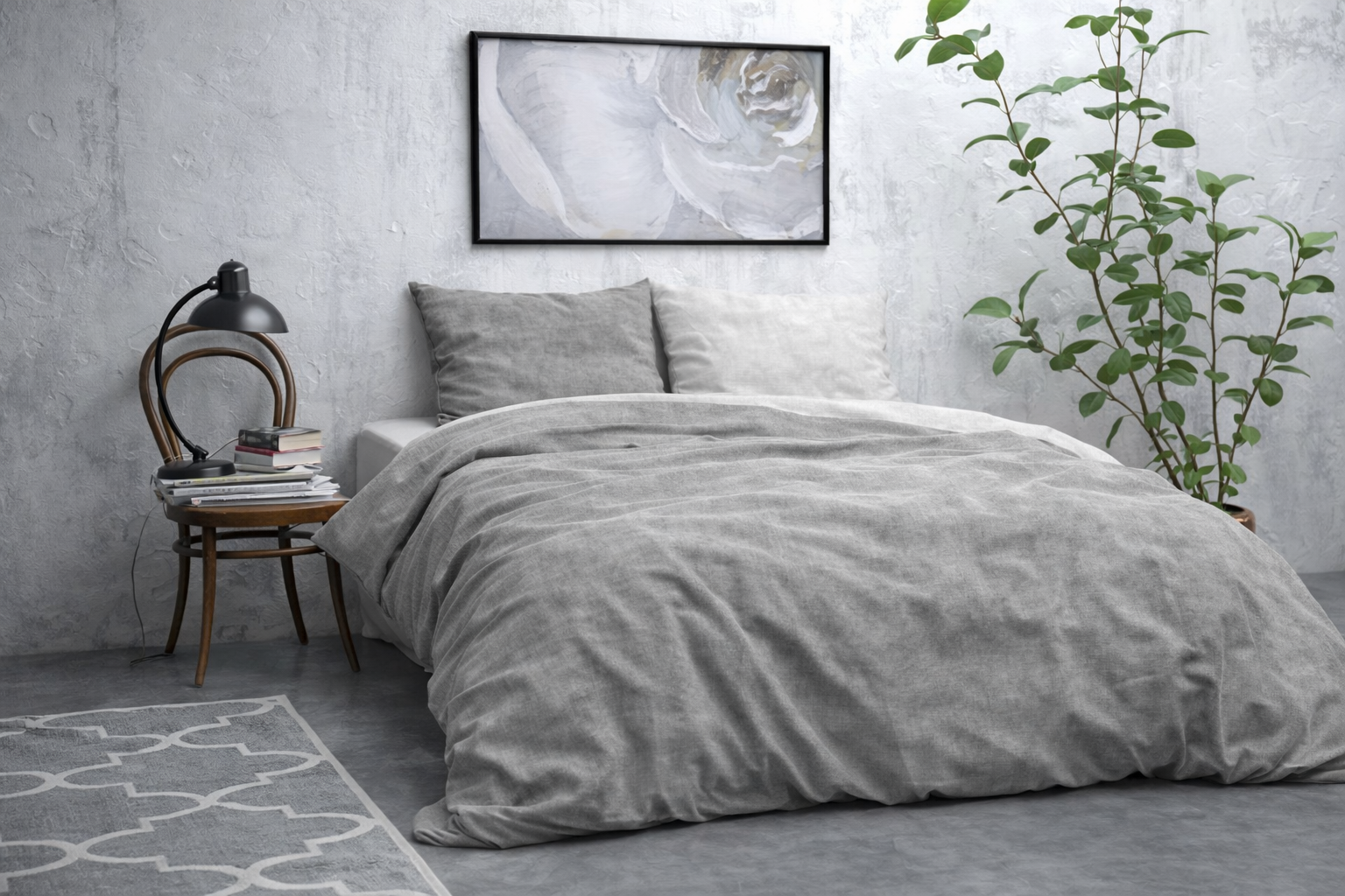 Lenjeria de pat Washed Bumbac Gray este confectionata din flannel de calitate, cu 80% bumbac si 20% poliester, oferind o senzatie moale si calduroasa, perfecta pentru sezonul rece. Densitatea de 150 GSM asigura un echilibru ideal intre confort si rezistenta, iar culoarea gri se integreaza usor in orice stil de dormitor.
