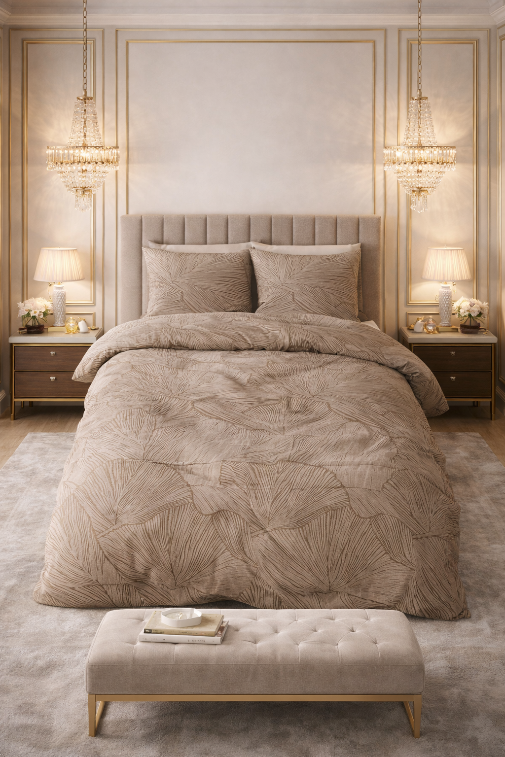 Lenjeria de pat Pure Amber Beige/Brown este realizata din 100% bumbac natural, oferind respirabilitate excelenta si o senzatie placuta la atingere. Combinatia de culori beige si brown si designul modern aduc un plus de rafinament dormitorului, fiind potrivita pentru un stil contemporan si relaxant.