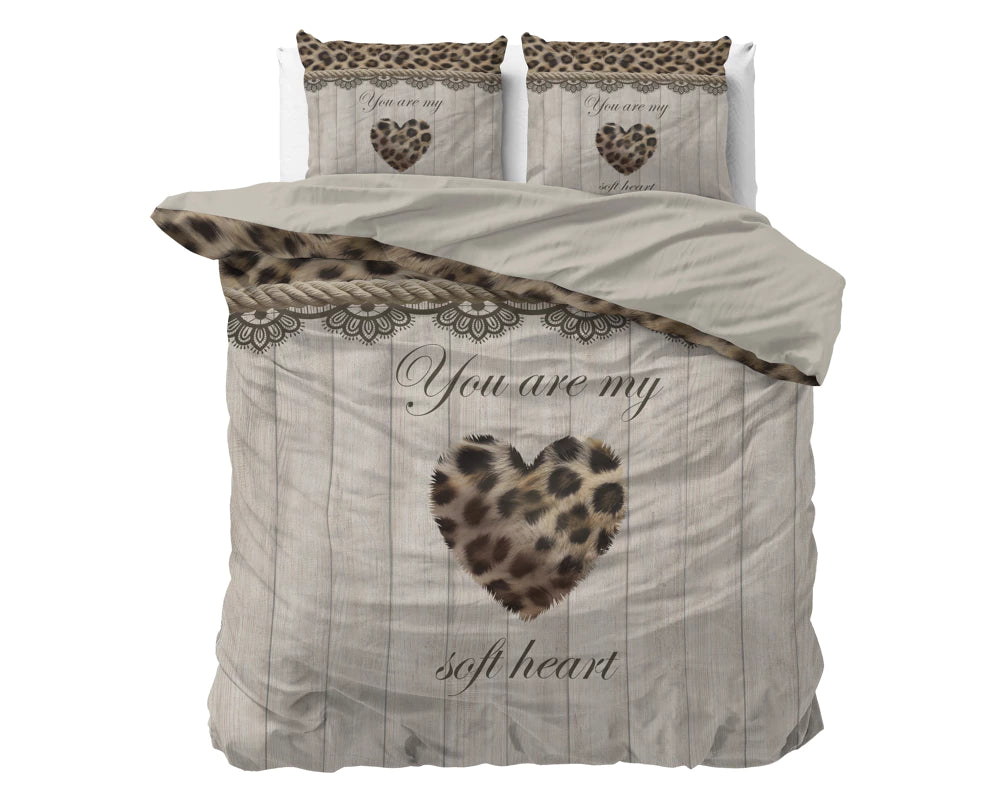 Lenjerie de pat, Sleeptime You Are My Heart Sand 200x200/220, Microfibra 90gsm, 2 Fete de Perna, Antialergic, Print Digital
