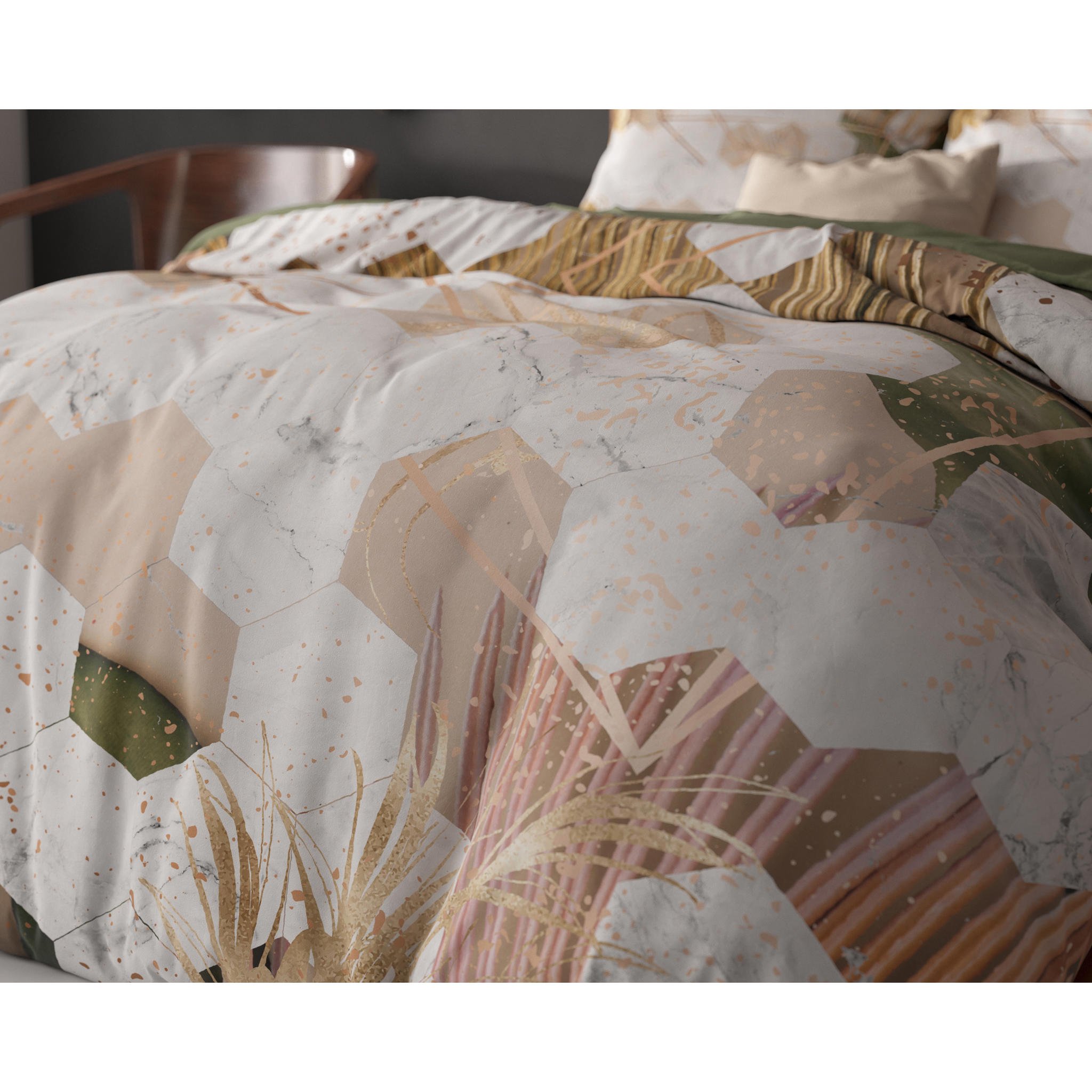 Set Lenjerie de pat Sleeptime Zaza White 200x200/220, Microfibra 90gsm, 2 Fete de Perna, Antialergic, Print Digital